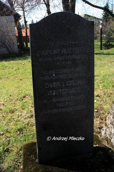 Napis: DLA PAMIĘCI/ LUDNOŚCI ŻYDOWSKIEJ/ W OKOLICY/ BOCHNIA-WIŚNICZ/ OFIARY PRZEŚLADOWAŃ/ HITLEROWSKICH/ 1939-1945