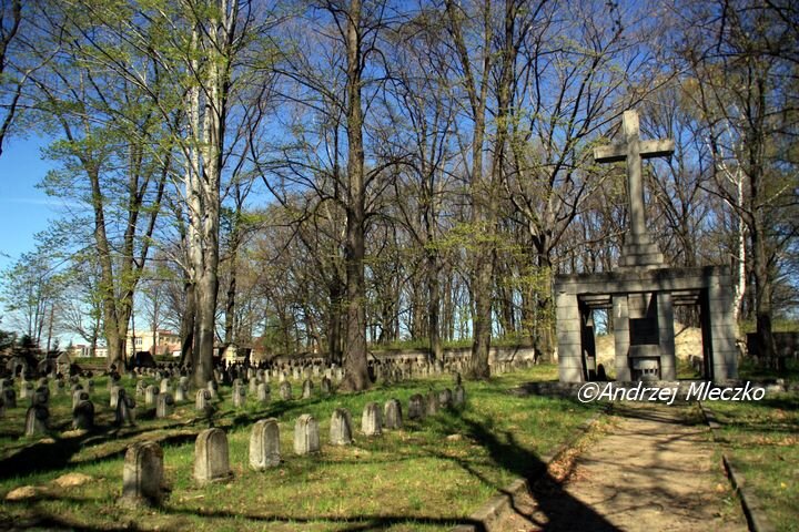 Cmentarz ma plan prostokąta ogrodzony wysokim murem, po bokach bramy wejściowej płaskorzeźby orłów. Od wewnątrz znajdują się tu altany z kamiennymi ławkami. W narożach kamienne pergole z drzewami pośrodku. Pośrodku pomnik centralny w formie wysokiego krzyża otoczonego kolumnadą. Znajdują się tam tablice inskrypcyjne, podobnie jak na ścianie tylnej mającej kształt łuku. Był to cmentarz zbiorczy dla szpitali i lazaretów wojskowych. Pochowano tu 441 żołnierzy armii austro-węgierskiej, 3 niemieckiej i 63 rosyjskiej. Przy wejściu została umieszczona tablica, która podaje podstawowe dane o cmentarzu, ale inną liczbę pochowanych żołnierzy: 445 żołnierzy armii austro-węgierskiej, 3 niemieckiej i 64 rosyjskiej.