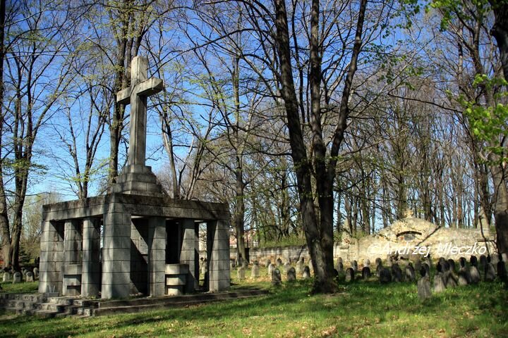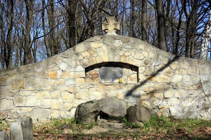 AUF DEN WESTGALIZISCHEN SCHLACHTFELDERN/ SIND IN DEN JAHREN DES WELTKRIEGES 1916-1917/ VOM K.u.K MILITARKOMMANDO KRAKAU/ UNTER LELTUNG DES FML. BRANDNER EDL. V WOLFZAHN/ 378 KRIEGERFRIEDHOFE DAVON IM BEREICHE DER/ K.K. BEZIRKS HAUMPTMANNSCHAFT BRZESKO 42/ FRIEDHOFE ERBAUT WORDEN