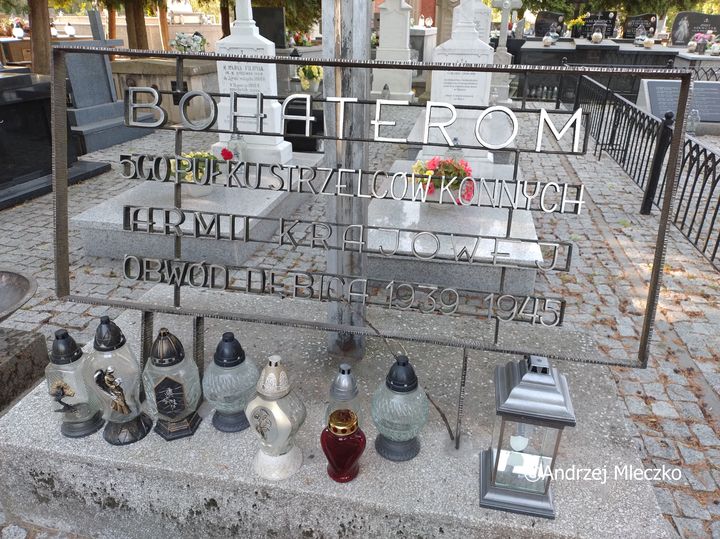 Napis: BOHATEROM/ 5GO PUŁKU STRZELCÓW KONNYCH/ ARMII KRAJOWEJ/ OBWÓD DĘBICA 1939 1945