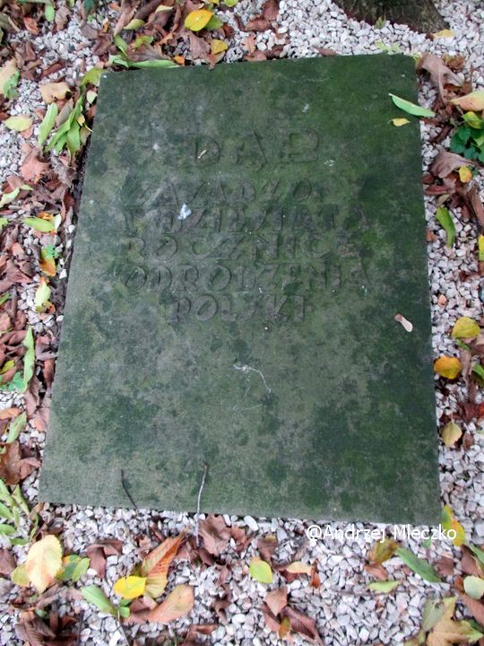 Napis: DĄB/ ZASADZONY/ W DZIESIĄTĄ/ ROCZNICĘ/ ODRODZENIA/ POLSKI