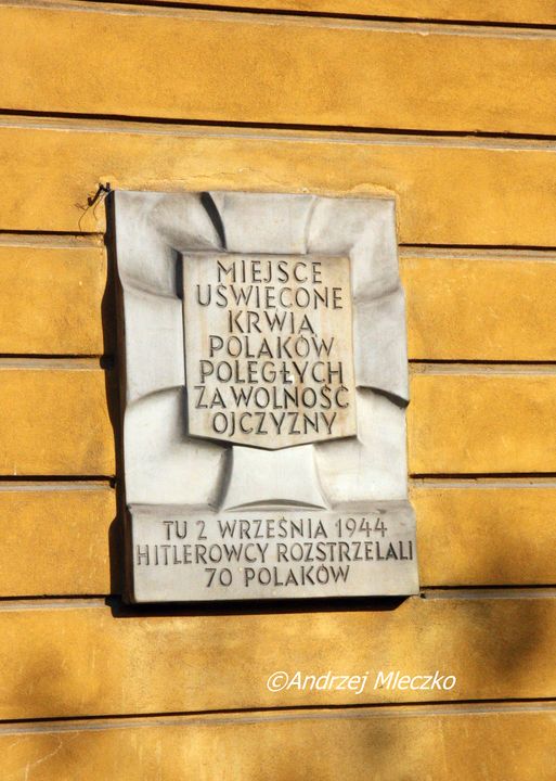 Warszawa - tablica Tchorka upamiętniająca 70 zamordowanych Polaków przez hitlerowców