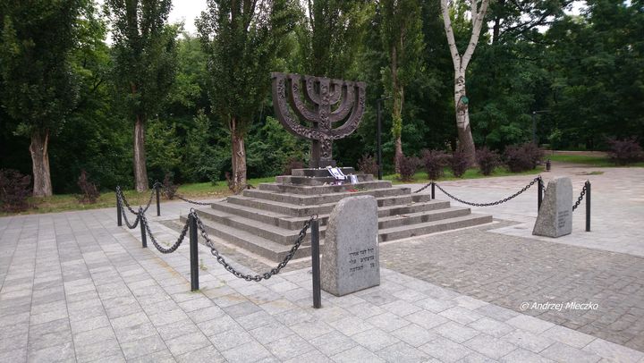 Pomnik w kształcie menory upamiętniający zamordowanych tu Żydów