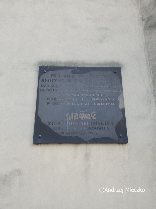 Oświęcim - tablica upamiętniająca pontyfikat Jana Pawła II i powstanie Solidarności