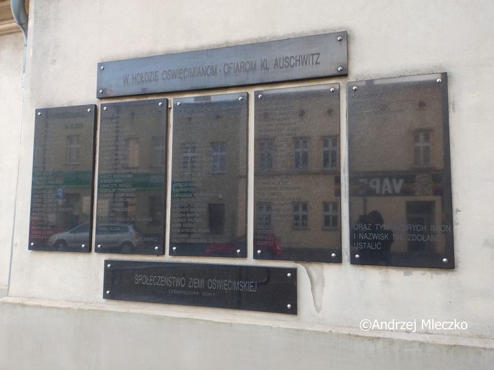 Oświęcim - tablica poświęcona mieszkańcom Oświęcimia, któzy zginęli w KL Auschwitz