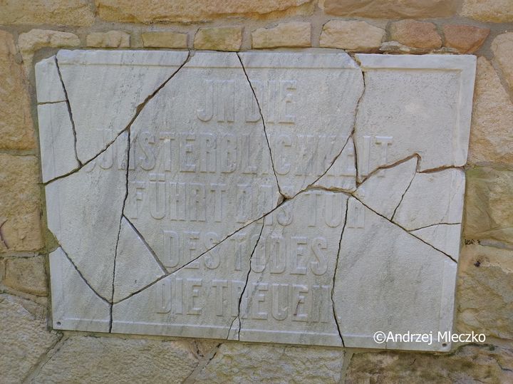 Napis: IN DIE/ UNSTERBLICHKEIT/ FÜHRT DAS TOR/ DES TODES/ DIE TREUEN