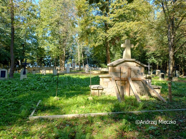 Opisywany jako Królówka. Cmentarz założony jest na planie prostokąta z półkolistym aneksem od strony wschodniej i niewielkim prostokątnym aneksem od strony zachodniej. Obszar cmentarza podzielony jest na dwie kwatery kamiennym murkiem z przejściem w środkowej części. Pomiędzy dwoma słupami znajdują się schody. W małym aneksie znajduje się wysoki krzyż łaciński wykonany z kamiennych bloków z tablicą inskrypcyjną.
