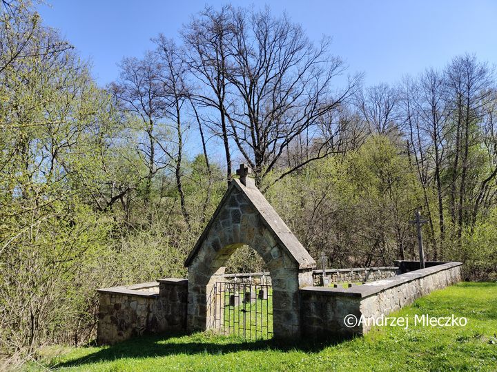 Cmentarz otoczony jest murem kamiennym z frontową, łukową bramą. W głębi cmentarza znajduje się drewniany krzyż z podwójną metalową glorią. Pochowano tu 39 żołnierzy armii rosyjskiej i 2 niemieckiej.