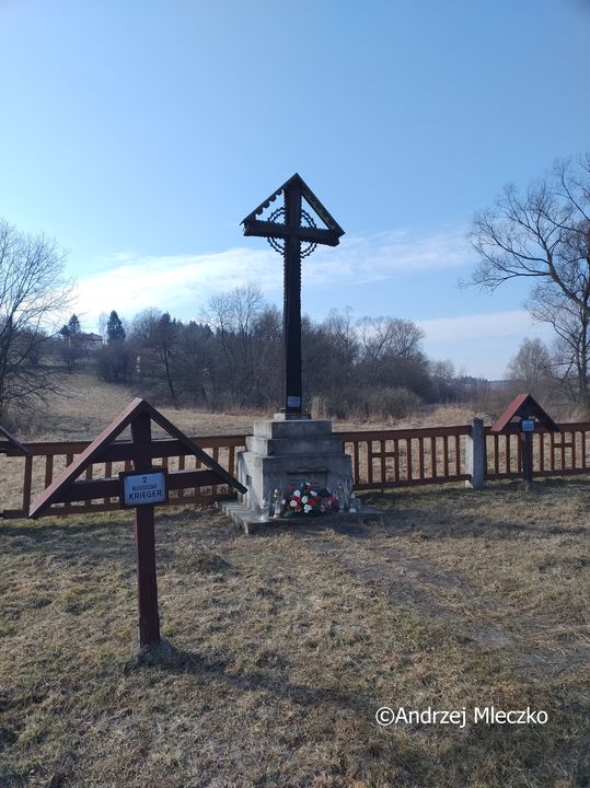 Cmentarz ma kształt zbliżony do półokręgu. Pomnikiem centralnym jest tu ozdobny krzyż drewniany, przykryty daszkiem. Na betonowym cokole znajduje się tablica inskrypcyjna. Niestety, wobec położenia nad potokiem ulegał zniszczeniu podczas powodzi. Pochowano tu 24 żołnierzy armii austriackiej i 58 rosyjskiej.