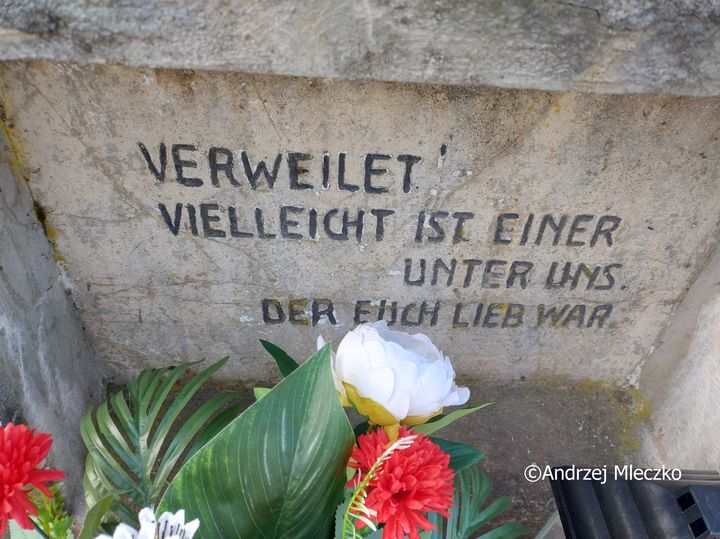 Napis: VERWEILET!/ VIELLEICHT IST EINER/ UNTER UNS./ DER EUCH LIEB WAR.