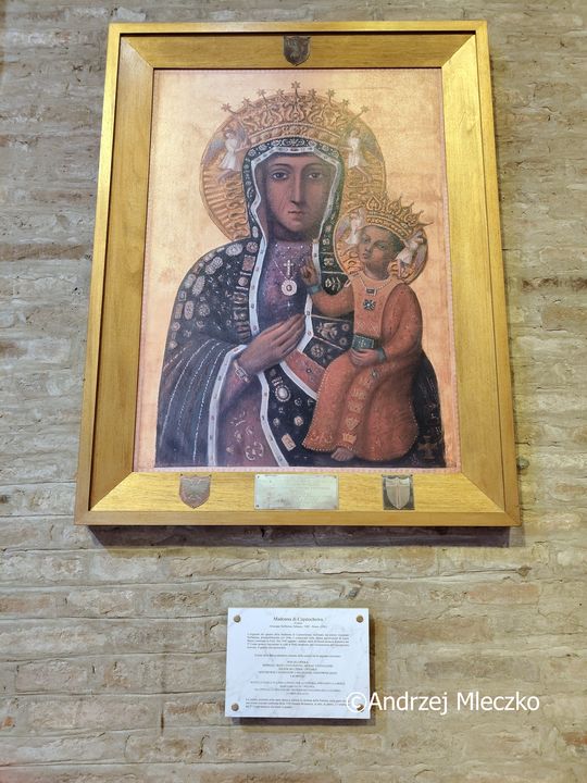 L'originale del quadro della Madonna dí Częstochowa, realizzato dal pittore Giuseppe/ Steffanína, presumibilmente nel 1946, è conservato nella chiesa parrocchiale dí Santa/ Maria Lauretana ín Forli. Nel 1947 quando í militari della dívísíone polacca Kresowa del/ 2° Corpo polacco lasciarono la città dí Forli donarono, per riconoscenza/ dell'accoglienza ricevuta, il quadro alla parrocchia.